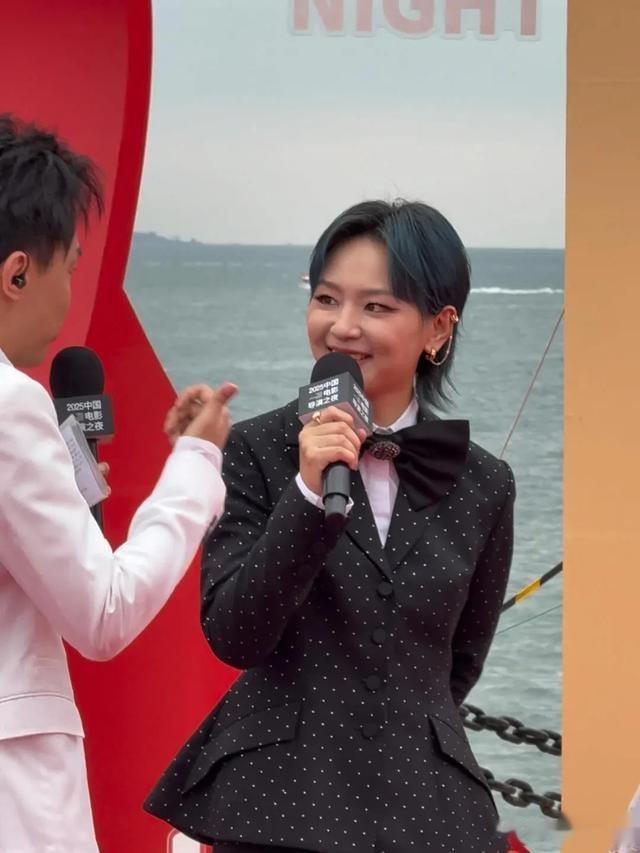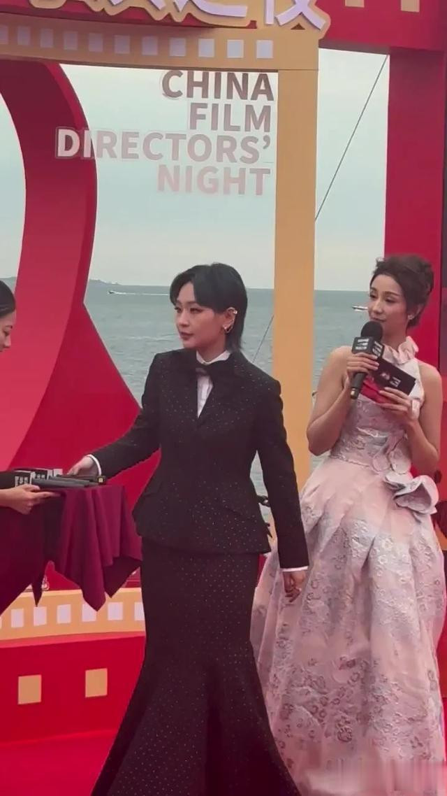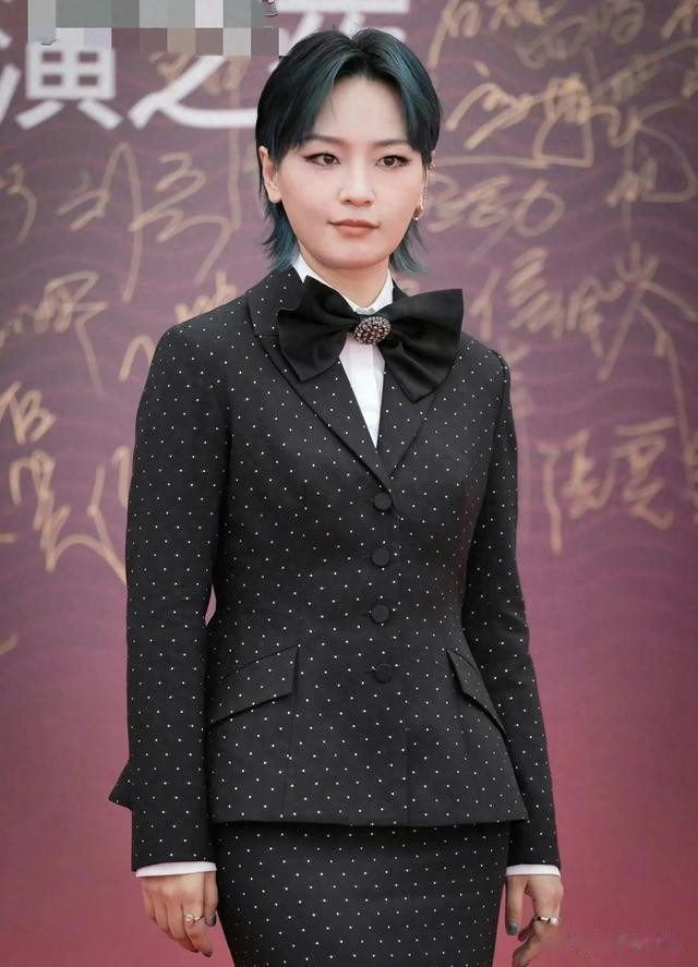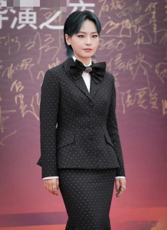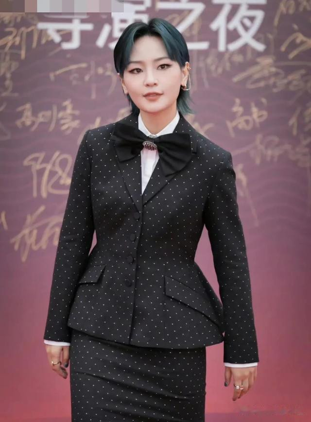 > 周笔畅出席中国电影导演之夜, 蝴蝶结饰波点套裙, 女人味十足