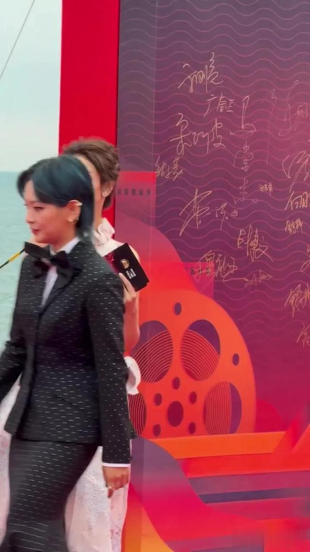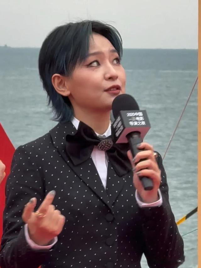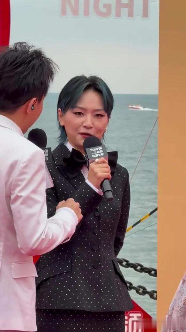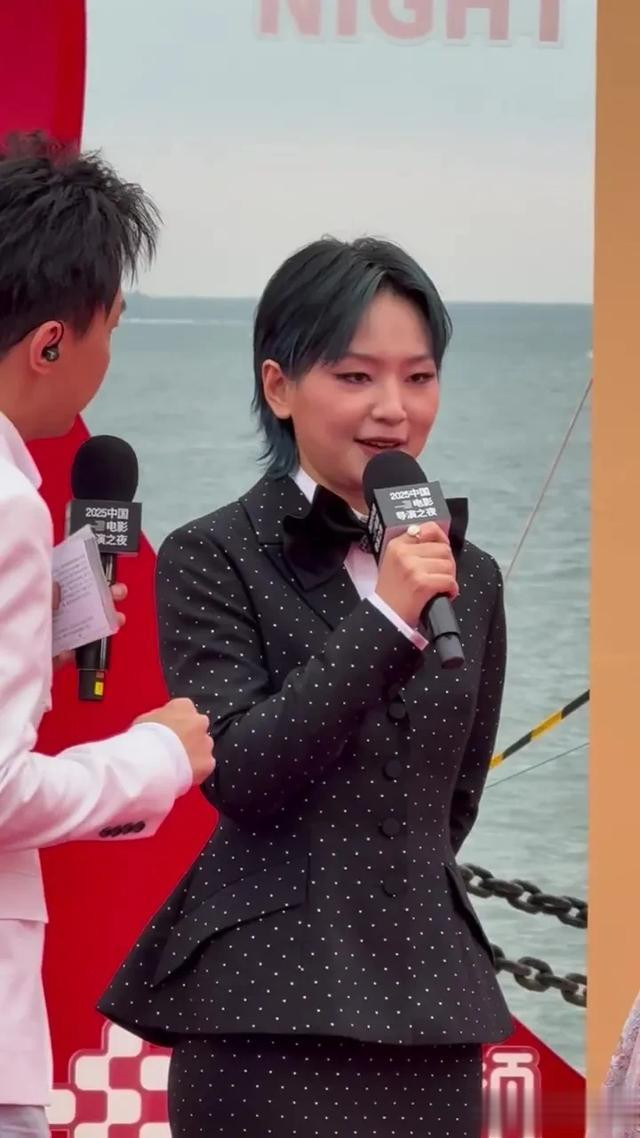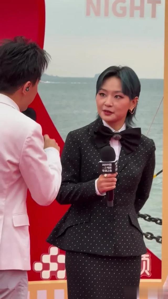 > 周笔畅出席中国电影导演之夜, 蝴蝶结饰波点套裙, 女人味十足